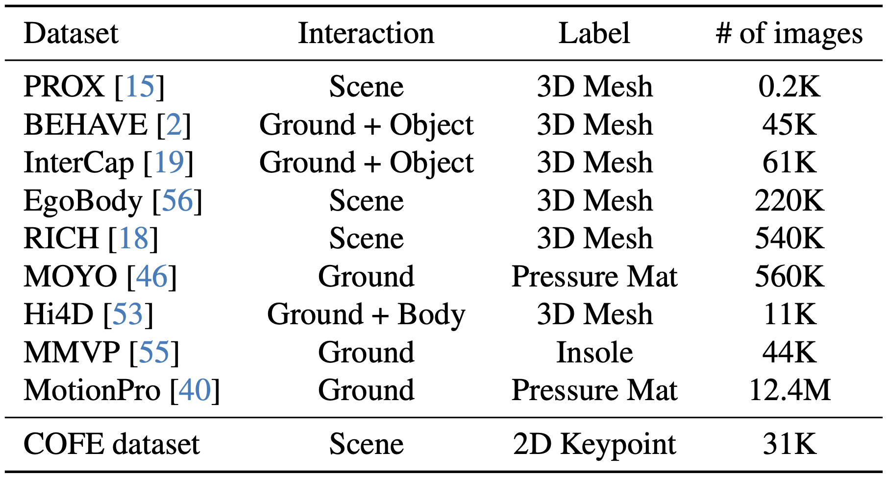We leverage 10 datasets with various foot interaction, including our proposed COFE dataset that provides in-the-wild joint-level foot contact annotations.